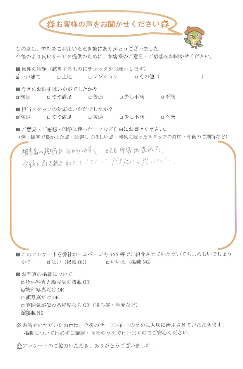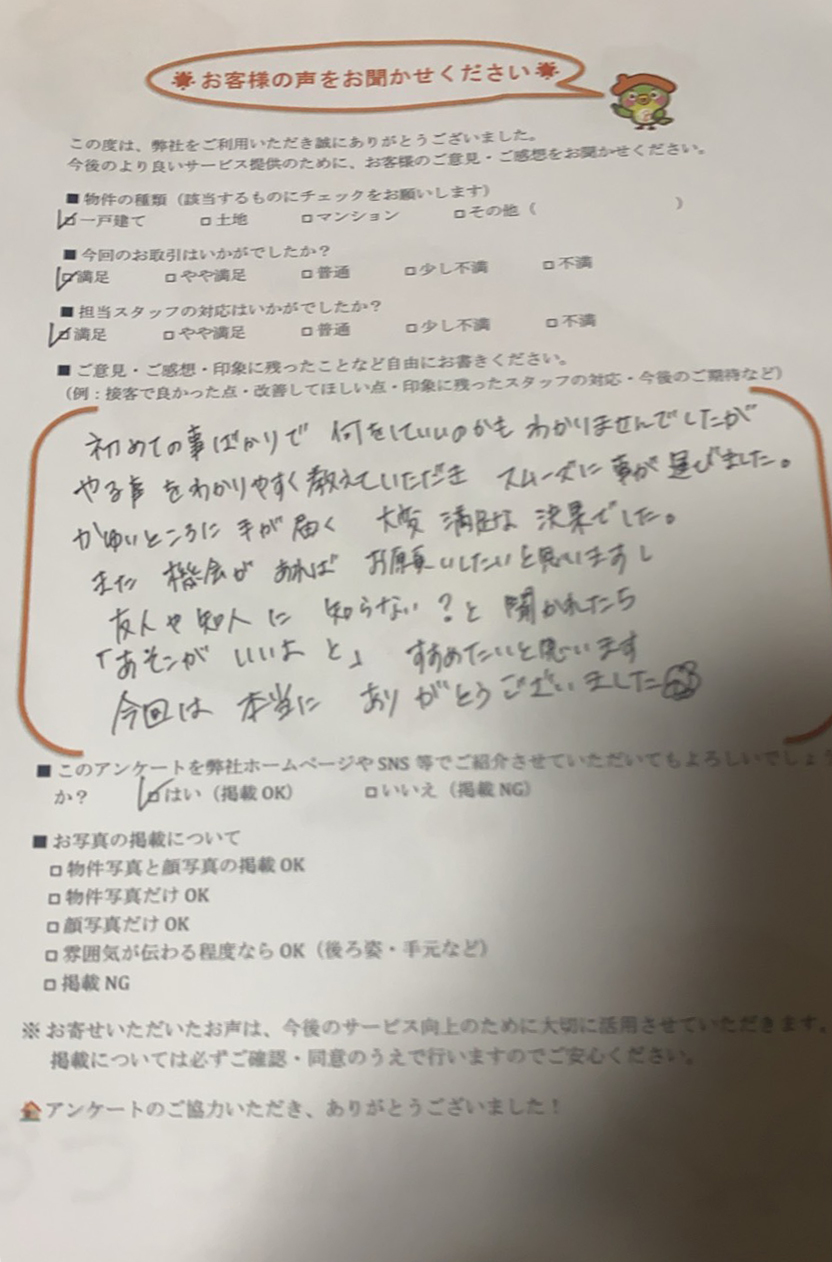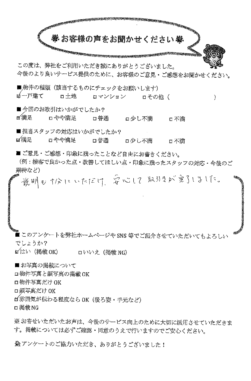「安心して取引が完了しました」説明も十分にいただけ、安心して取引が完了しました。