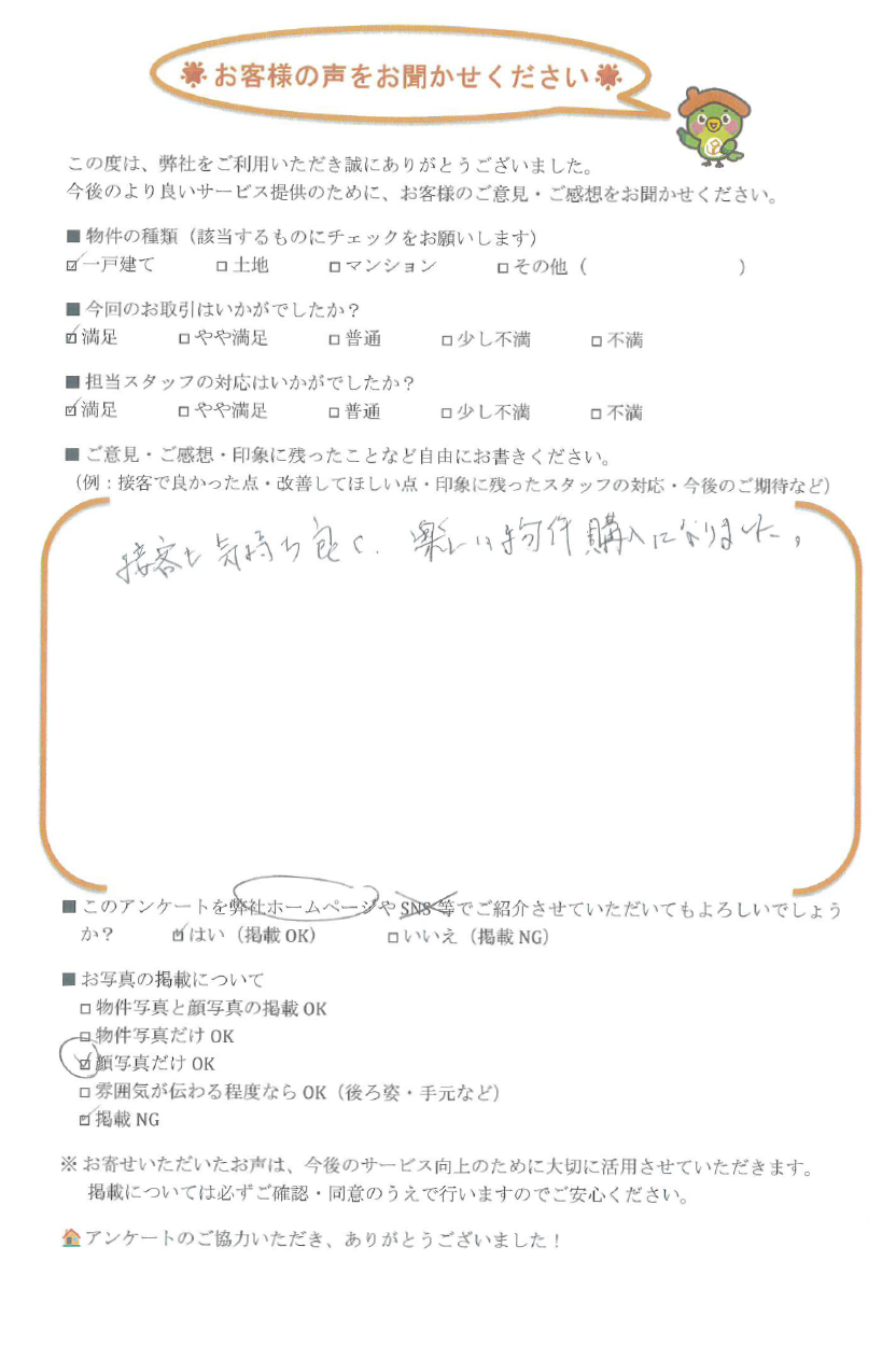 「接客も気持ち良く、楽しい物件購入になりました。」接客も気持ち良く、楽しい物件購入になりました。