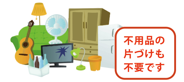 ご不要な家具や家電など無料で処分いたします。そしてまだ使えるエアコンやカーテン等を置いていかれる場合には、買取価格にプラスさせていただきます。