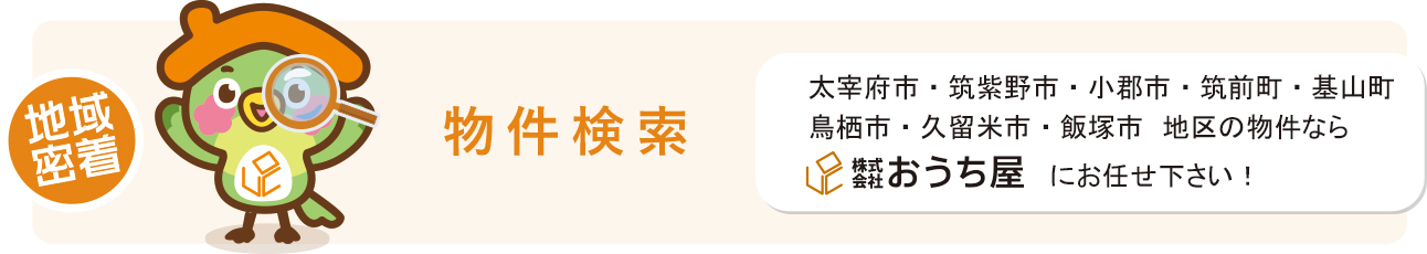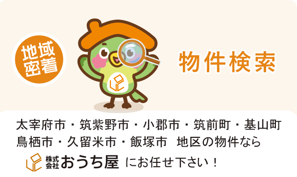 おうち屋は地域密着で「太宰府市」「筑紫野市」「小郡市」「筑前町」「基山町」「鳥栖市」「久留米市」「飯塚市」地区の物件を取り扱っています。