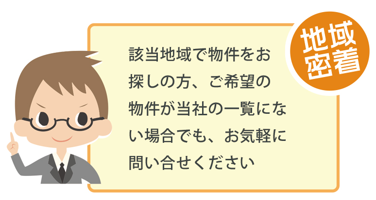 「この地域内で」「予算がいくらで」「こんな物件を探している」などありましたら、お気軽にお問い合わせください。